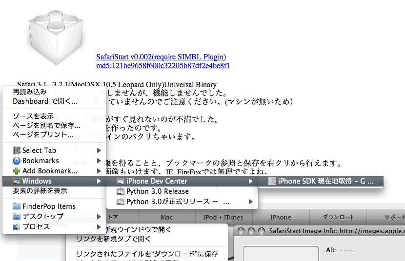 Safari のヘルプに SafariStart用のメニューをつけましたが、